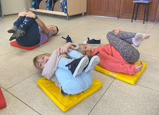 W ramach zajęć z innowacji pedagogicznej "Uważność - nasza siła, wielka moc" realizowaliśmy oddech mocy - zabawę chusteczkami, czytaliśmy relaksajkę "Profesor Klon", bawiliśmy się w poszukiwanie kasztana, ćwiczyliśmy oraz projektowaliśmy domek na drzewie.